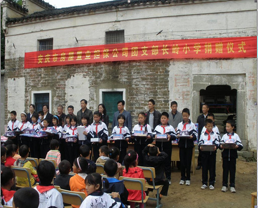 9月29日,安慶市房屋置業(yè)擔保公司團支部組織團員青年一行18人,來到桐城市唐灣鎮(zhèn)長嶺小學,向該校師生捐贈了價值7000余元的學習用品及服裝等物資。桐城市團市委、唐灣鎮(zhèn)政府相關(guān)領導及該校師生100多人參加了此項活動?! ?br />