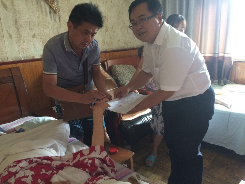 2018年9月2日,市二手房房票結(jié)算中心在接到一戶因房票權(quán)利人中風(fēng)癱瘓后常年臥床,無(wú)法到達(dá)結(jié)算服務(wù)大廳現(xiàn)場(chǎng)辦理業(yè)務(wù),需提供上門服務(wù)的申請(qǐng)后,結(jié)算中心組織安排前臺(tái)工作人員程松同志攜帶相關(guān)材料上門為其現(xiàn)場(chǎng)辦理了業(yè)務(wù),受到客戶的稱贊。
